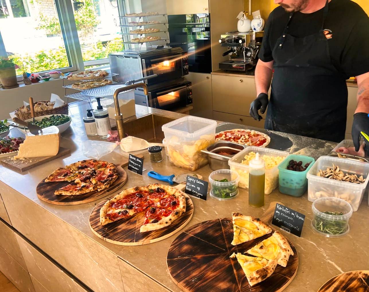 Vi medbringer vores egen ovn og bruger lokalt indkøbte ingredienser til at levere restaurantkvalitet og frisklavede pizzaer til dit arrangement.